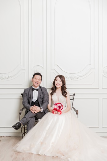 接著是小姑的部分,相信著”台中的技術與品質理當要比彰化還要好的前提”,所以選擇了台中的工作室.結果是一連串的失望與懊惱.首先是服務的方面,第一次去諮詢的時候工作人員態度都非常的親切,一進門就立刻遞上茶水,也不斷端出各種吸引顧客上門的招式來引誘妳下定,說真的如果不是因為我那時候結婚的日期還沒有出來,我可能會跟小姑一起下定了!然而下定之後就是一連串惡夢的開始,在之後陪小姑去該間工作室的時候,一進門雖然會招呼,但是招呼完店員就各做各的事,不會主動的來詢問是否有哪裡需要幫忙.而且在漫長挑片與看修片的過程中,完全沒有遞任何一杯水上來,下定前後態度的差異,這點真的大大的扣分!而專業度上面,雖然事前都有跟攝影師與造型師討論過,但是在拍攝當天攝影師卻不太記得當初所討論的內容,讓我們有種努力做足功課,但好像都白費力氣的感覺;這讓人不是那麼的舒服,也很慶幸自己當初沒有跟著小姑一起下定….