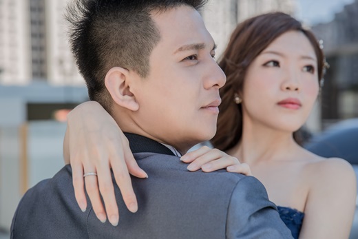 其實要拍婚紗這件事對我跟先生都有點小小的壓力,先生是個不太喜歡拍照的人,而我是一看到鏡頭就會渾身僵硬,表情超不自在的人,我們交往超過5年,合照卻寥寥可數….. 加上我本身是高度近視+大小眼(一眼外雙一眼內雙),眼鏡戴久了眼型都會變得不好看,因此在化妝的時候,我最在意的就是眼型的調整,彩妝老師的功力就能在這裡分辨得出差別.基於以上的因素,我的家人本來不怎麼看好我的婚紗照,認為我拍出來一定會很僵,拿掉眼鏡一定會不好看…..但作品出來完全跌破他們的眼鏡! 作品不但非常自然,我的妝大家也是大大稱讚,這都要歸功於攝影師&新秘老師!!!