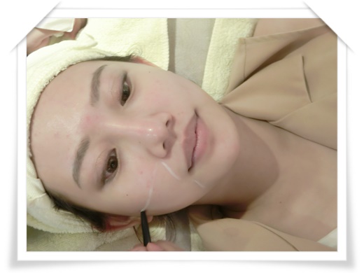 院長先用醫美專用筆幫我在要做音波拉皮的區塊畫出要打的區域~然後護理師幫我敷上凝膠,這凝膠除了可以幫忙讓超音波導入真皮層外,也可以舒緩肌膚.
