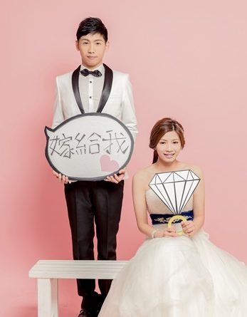 跟攝影團隊相處到最後,已經呈現完全放開的狀態,來了個反串婚紗照!