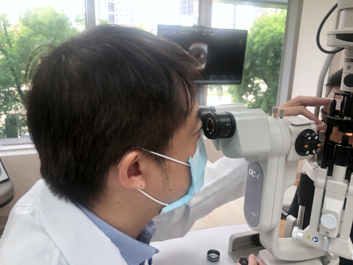 張醫師本人,也會親自幫患者做視網膜眼底的檢查.