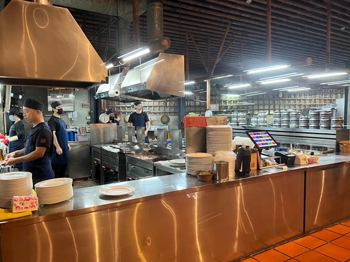 黃金海岸採用的是半開放式廚房,客人不但看得到廚房師傅的料理過程,還會看到他們直接從蝦池現撈泰國蝦,馬上進廚房料理。